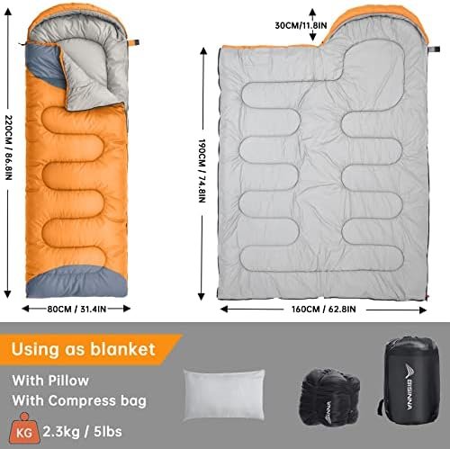 【4 Season sleeping bag】Our comfortable Sleeping bags for adults and kids have a hollow fiber fill that traps heat and keeps you feeling warm and comfortable, with a warm 480grams/ m² hollow cotton filling, temperature range: as low as 23°-50°F, Whether you are camping, hiking, or having sleepovers in the backyard, our sleeping bags will keep you warm and protected.