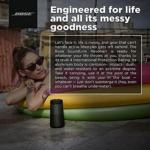 DURABLE PORTABLE SPEAKER: SoundLink Revolve-plus II is dust and water resistant (IP55 rating), so it will stand up to splashes by the pool. Plus, it’s easy to grab and go, with a flexible fabric handle