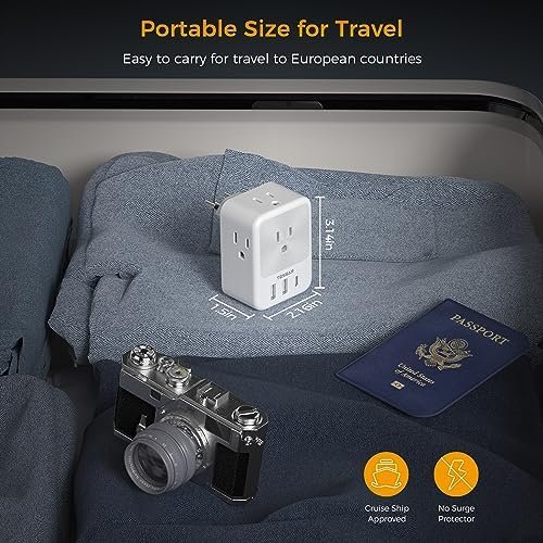Compact Size for Travel: With only 4.97oz lightweight design, portable size Brazil adapter plug can easily fit in luggage, effectively saving your suitcase, backpack or handbag space; No surge protection, no cords, making it fully cruise ship essentials