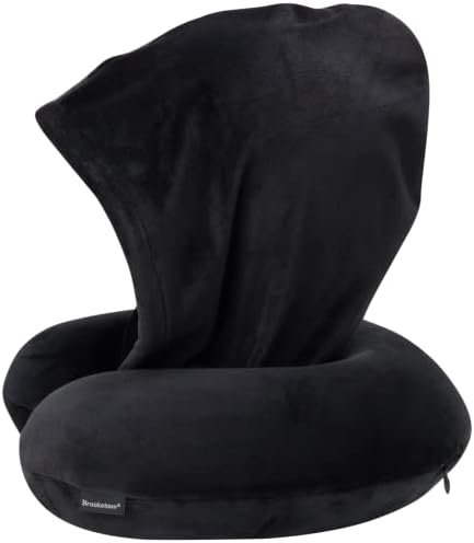 Brookstone Hooded Memory Foam Neck Pillow with High Density Memory Foam for Vaca…