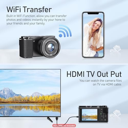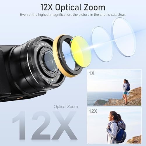 Cameras for Photography,4K 64MP Digital Camera,12X Optical Vlogging Camera for Y…