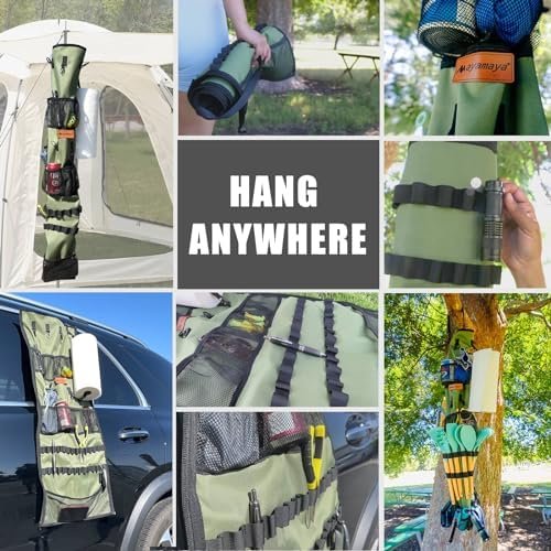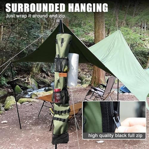Hang It Anywhere: The hanging storage bag is equipped with two sturdy straps, allowing you to hang it freely on your car, a tree, or inside your camping tent. Moreover, it can be zipped up and wrapped around pillars such as trees or canopy poles for added versatility.