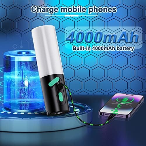 𝑼𝑺𝑩 𝑹𝒆𝒄𝒉𝒂𝒓𝒈𝒆𝒂𝒃𝒍𝒆 𝒂𝒏𝒅 4000 𝑪𝒂𝒑𝒂𝒄𝒊𝒕𝒚 𝑴𝒐𝒃𝒊𝒍𝒆 𝑷𝒐𝒘𝒆𝒓 – The LED camping string lights can be recharged via a regular 5V USB charging cable (not included),which is more convenient and environmentally friendly than other camping lanterns with camping string lights that require AA batteries.No need to waste money replacing batteries frequently. The camping string lights can also be used as a 4000mAh power source to charge other smart devices in an emergency.