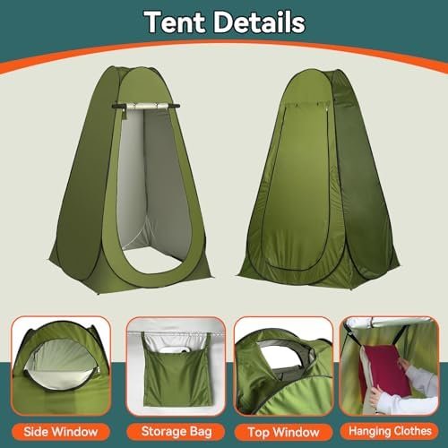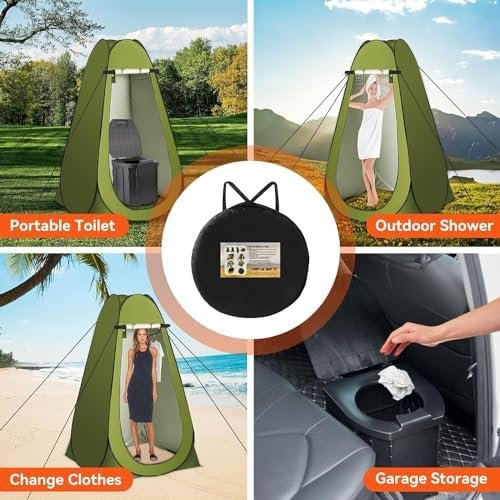【Thickened and Solid Material】Built with an anti-rust steel frame, it includes 4 ground stakes and support ropes, enhancing overall tent stability. Instant pop-up and easy storage make every trip more convenient. It can be used on all your outdoor adventures, including hiking, camping, picnic, beach and RV trip. The toilet potties can also serve as a multifunctional item, doubling as a trash bin, small stool, or storage box.
