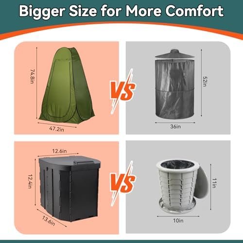 Camping Toilet with Pop up Privacy Tent, Portable Toilet Kit for Adults,X Large …