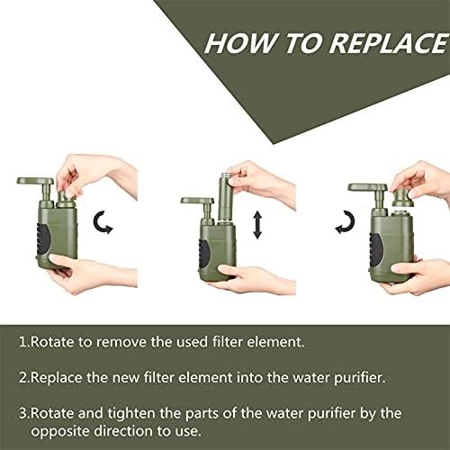 Easy To Replace: When replacing the portable backpacking water filter element, just need to remove the used carbon filter first, then push in the new water filter element, rotate and fix the other parts to start using, the operation is very simple and save time.