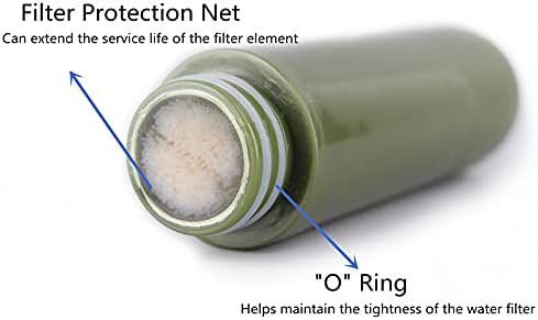 Excellent Quality: Hiking water filter replacement filter is made of food-grade BPA-free ABS sturdy plastic, which can ensure that the filter element will not be damaged by dropping it; the “O” ring at the junction of the filter element can ensure the tightness of water purifier.