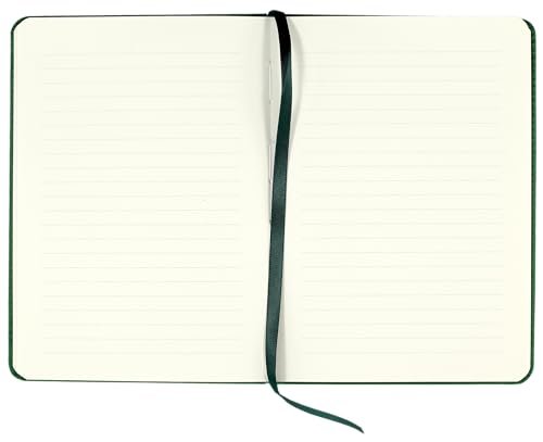 Mid-weight ivory paper is luxuriously smooth.Light gray lines subtly guide your writing.Archival quality meets international standards for permanence.Forest-green satin ribbon bookmark keeps your place.