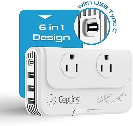 [CHARGE 6 DEVICES AT ONCE]:2 USA Input, 4x USB with PD 18W Fast Charging, Perfect for CPAP, Electric Toothbrush, Fan, Nebulizer, Game Console,, port allow simultaneous multi-device charging at high speed. Ceptics Technology can output 6.4A(Max) and automatically matches the maximum charging current of the connected devices.[SAFETY CERTIFIED] – Silent Fan to prevent it from overheating, Auto Shut Down Surge Protection, Over Current, Over Temperature, Short Circuit Protection.