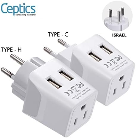 Ceptics Israel, Palestine Travel Plug Set – with 2 USB + USA Socket Input – Type…