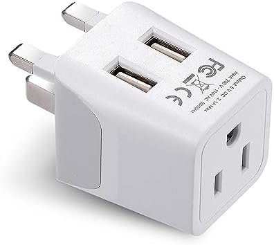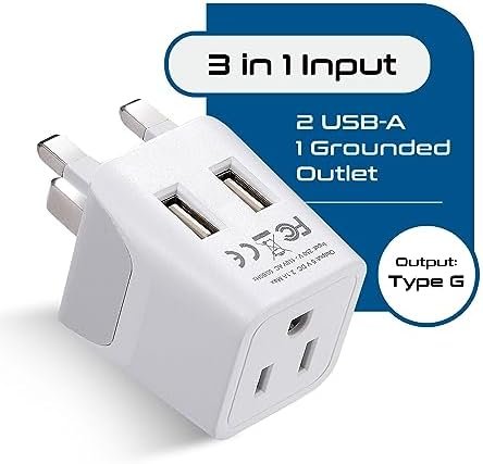 Ceptics UK Travel Adapter Plug – with 2 USB + USA Socket Input – Type G – Ultra …