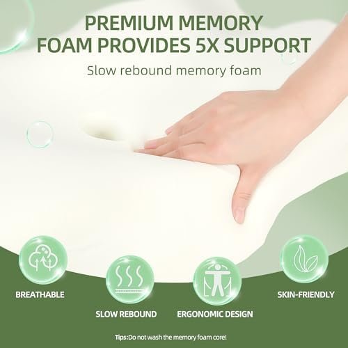 【Suitable for All Sleeping Positions】Ergonomic pillow made of high-density slow rebound memory foam that provides amazing comfort and solid support. Suitable for all sleeping positions, and reduce the pressure on your skin, so that you can sleep peacefully.