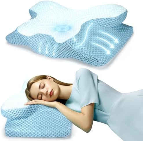 Cervical Neck Pillow for Neck and Shoulder Pain, Cooling Memory Foam Contour Pil…