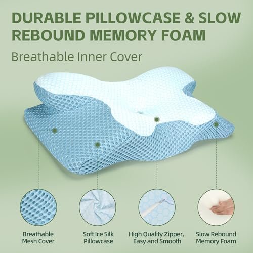 【Cooling & Breathable】Removable pillowcase made of ice silk fabric, the pillow is soft, breathable, and comes with cooling properties, keeping you comfortable throughout the night.Pillowcase is machine washable,easy to clean and maintain.
