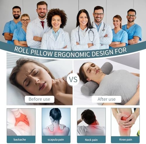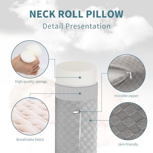 Cervical Neck Roll Foam Pillow, Round Neck Support Pillow for Neck Pain Relief S…