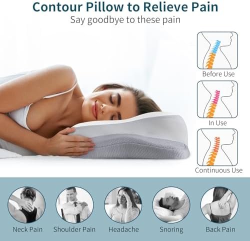 2 Personalized Height for Any Sleep Style: Our ergonomic pillows are available in two height options with size 25*13.7*5.2/4.5 inches (L x W x H). The orthopedic and supportive pillow for neck and shoulder pain is designed for multiple sleeping positions, such as side sleeping, supine, stomach sleeping, back sleeping and low pillow sleepers etc.