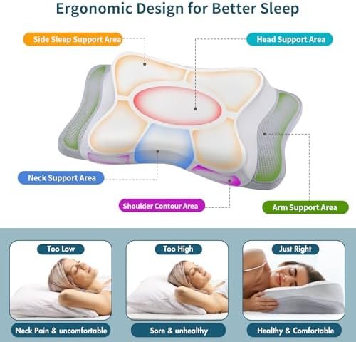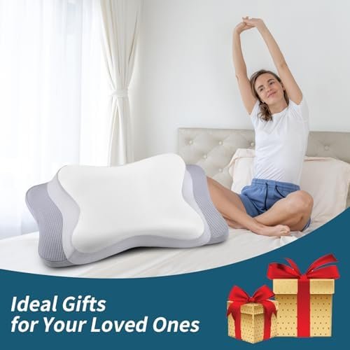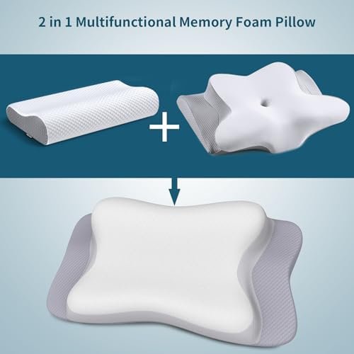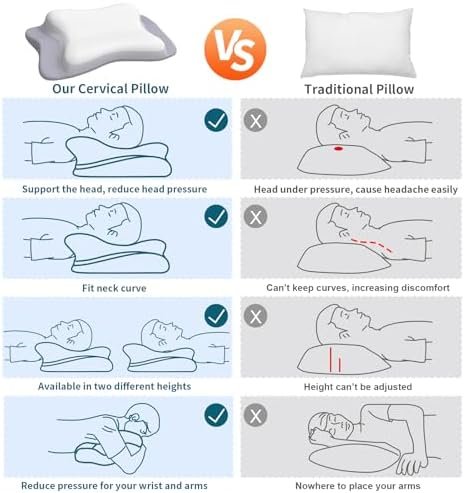 Premium Ergonomic Contour Pillow: The cervical pillow adopts a unique butterfly shape design and combines with traditional pillow, greatly relieves neck pain and reduces shoulder pressure to achieve a healthy sleep, waking up in the morning without pain. The contoured design keeps your neck and head at the right height and provides excellent support during sleep