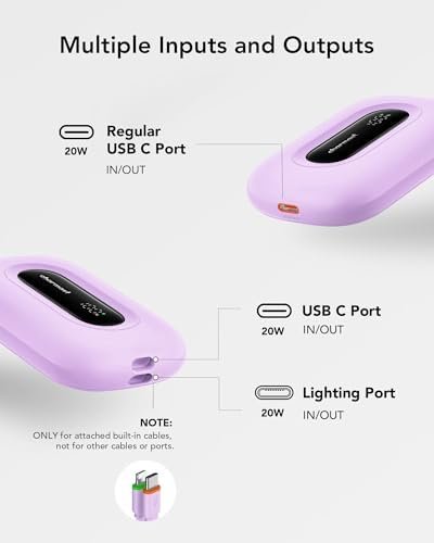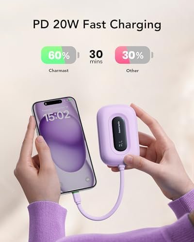 Ultra Compact & Aesthetic: With its sleek, compact design, our mini power bank fits comfortably in your hand or easily stored in your pouch or small bags. Perfect for daily use or travel essentials. Besides, its built-in cable can be used as a convenient lanyard when not in use. Experience both style and functionality in one device.
