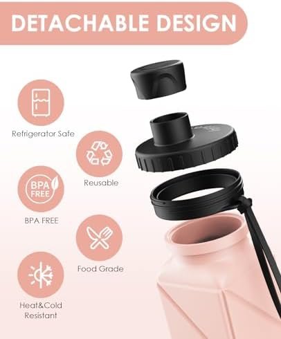 Leak-Proof and Easy to Clean: Equipped with leak-proof construction with a tight-fitting cover, this silicone reusable water bottle efficiently prevents spills and leaks. Additionally, the detachable bottle mouth and wide neck design make it easy to clean, ensuring a healthy drinking experience.