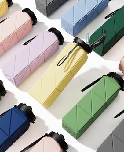 Collapsible Water Bottles, BPA-Free Silicone Foldable Water Bottle Cup with Stra…
