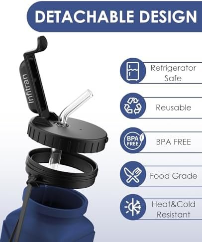 Leak-Proof and Easy to Clean: Equipped with leak-proof construction with a tight-fitting cover, this silicone reusable water bottle efficiently prevents spills and leaks. Additionally, the detachable bottle mouth and wide neck design make it easy to clean, ensuring a healthy drinking experience.