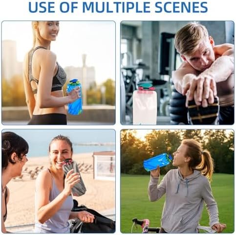 【Portable & Collapsible Design】 The portable water bottle is space-saving and portable, as it can be flattened or rolled up when empty, hung or hung when full.
