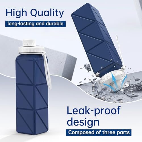 【Lightweight and Collapsible Water Bottle】This 21oz bottle collapses down to min size.Foldable water bottle can reserve 610ml liquid with less 150g in weight,convenient to carry.The lightweight collapsible water bottle is portable,which can be folded down to one-third of the size after drinking water,saving space up to 70%.❤Our silicone water bottle leakproof and soft but which makes it impact-resistant and super durable for sports, gym, camping, Cycling,Climbing,Running,and travel.