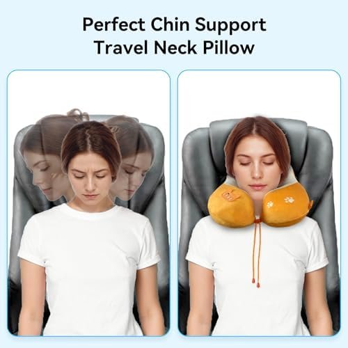 Perfect Chin Support: Comfier airplane pillow wraps around your neck, freeing your chin and preventing your head from falling forward. The adjustable rope lock ensures a perfect fit, providing optimal neck support during travel or in office.