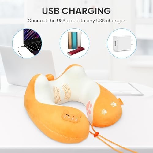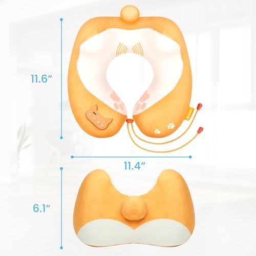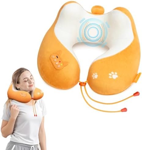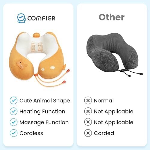 COMFIER Travel Pillow with Heat,Vibration Massage,Cordless Airplane Neck Pillow …
