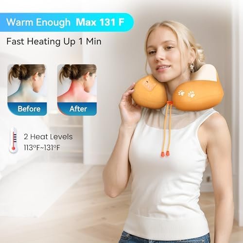 Quick Warm-Up: Comfier neck support pillow heats up quickly in seconds to a maximum of 131°F with 2 heat levels . This warmth promotes blood circulation and eases sore muscles, making it perfect for keeping your neck warm and comfortable.