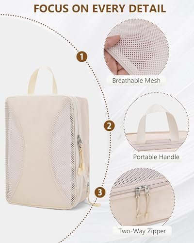 【Lightweight, Wrinkle-resistant, and Durable】The tear-resistant mesh is finely woven yet strong, offering both breathability and easy identification of contents. The double zippers are not only smooth but also provide efficient compression capabilities.
