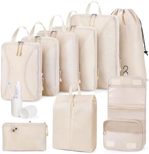 Compression Packing Cubes 10 Set, Suitcase Organizers, Luggage Organizer Bags fo…