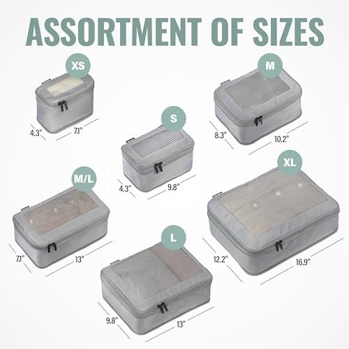 Compression Packing Cubes for Travel – Luggage Organizer Bags – Double Zipper Pa…