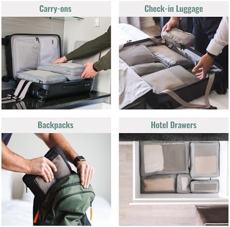 WILL FIT PERFECTLY IN MOST LUGGAGE – Our compression travel cubes will fit perfectly in most suitcases. We recommend 4 PCS set for carry-ons & 6 PCS set for check-in luggage. If you are traveling with a backpack, 4 PCS set will be the right choice for you.