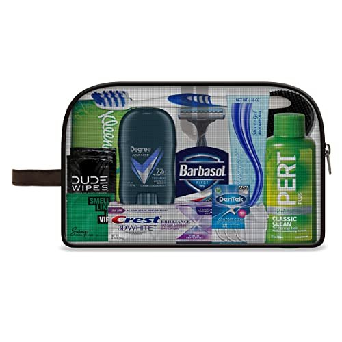 This kit is currently designated as Amazon’s Choice. Amazon’s Choice recommends highly rated, well-priced products available to ship immediately. 15 Piece Kit Contains: Hair care: Pert Plus 2in1 Shampoo + Conditioner 1.7 oz., , Walters Palm Scalp Brush, Barbasol Twin Blade Disposable Razor (1ct.), Fresh Scent Shave Cream (package may vary), Kleenex Tissue Pack 9 ct., Body: Degree for Men A/P Deodorant .5 oz., 2 – Dude Wipes (1ct.), Swago Cologne for Men Wipe (1 ct.), Oral Care: Crest Toothpaste .85 oz., Toothbrush, Toothbrush Cover, Dentek ADA approved Flossers (3 ct.), Misc: TSA Compliant Quart Size Zip Top Bag in Men’s Black Mesh Toiletry Zippered Bag with handle and top loop allowing bag to hang