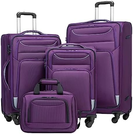 Coolife Luggage 4 Piece Set Suitcase Spinner TSA Lock Softshell lightweight (pur…