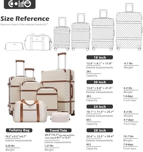 Coolife Luggage Set Suitcase Carry On Luggage PC Hardshell Luggage TSA Lock Spin…