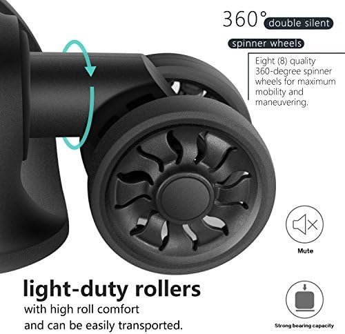 360 degree multi-directional spinner wheels offer effortless mobility in any direction. Push-button locking handle adjusts to multiple heights for comfort when rolling the case.