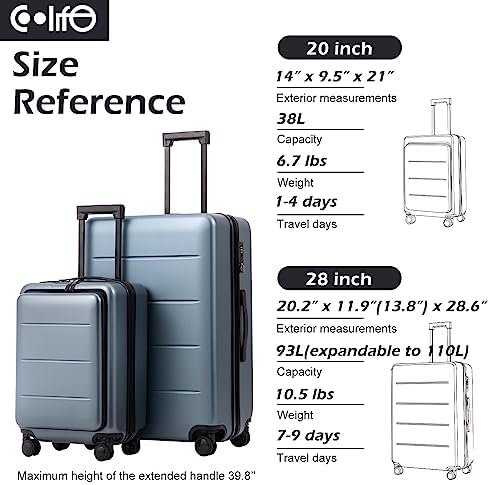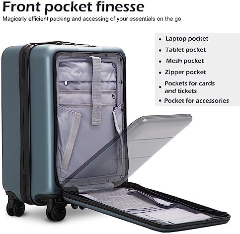 Size option: this luggage can be purchased separately, they are also sold as a set, the 20 inch carry-on features a front pocket and 28inch don’t have front pocket. please choose the size you want.The space of main compartment will be smaller than the ordinary 20-inch suitcase When the front pocket was full of things