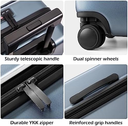 Practical Interior and Front Pocket:The interior of the luggage features crossed fixing band and net pockets to keep your travel essentials and small valuables well organized. And also the 20inch features a front a pocket for easy placement of laptops(up to 13.3in laptops), documents, and more. No worry that your things would in a mess when you open the suitcase.