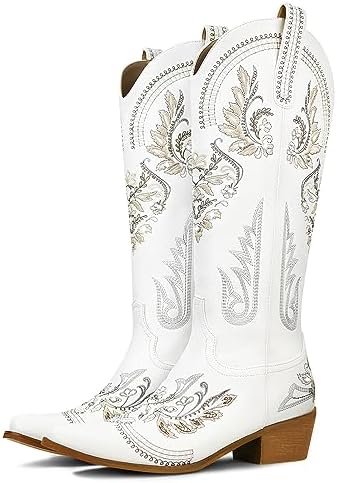 CORNMOOD Embroidered Cowgirl Boots for Women Rhinestone Fashion Western Cowboy B…