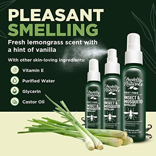 DEET FREE BUG SPRAY – Unlike DEET bug sprays, Medella protects you from gnats, black flies, no-see-ums, and mosquitoes using lemongrass essential oil – no harmful chemicals. Our insect repellent spray is also non-flammable and grass-safe.