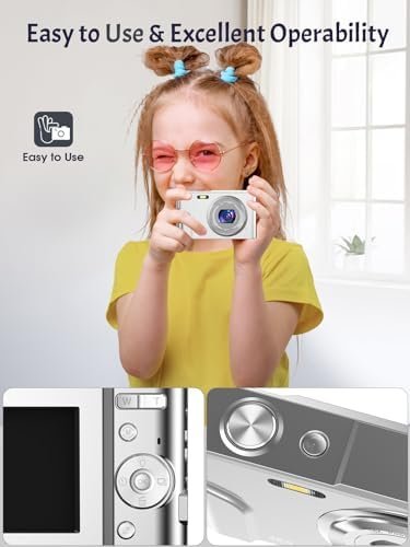 【Designed for Kids】The kids digital camera for beginners is smaller than a phone and lightweight enough (0.5lb), perfect for kids to hold and take it everywhere. From easy-to-access buttons to a simple-read menu, operating this travel camera is a piece of cake, perfect for kids aged 4-15, beginners, teens, students, and the elderly as a gift.