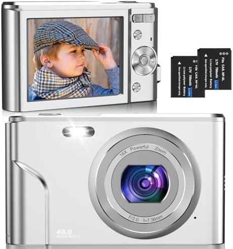 Digital Camera, FHD 1080P Compact Portable Travel Camera for Kids with 16X Zoom,…