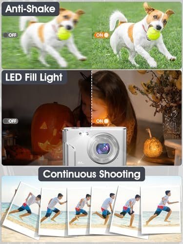 This point and shoot digital camera records FHD 1080P videos, its 2.5 inch LCD anti-blue light screen clearly shows the objects you capture while providing a good protection for kids eyes.