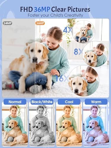 【2024 Upgraded Kids Camera】With its upgraded 1080P 36-megapixel resolution and autofocus feature, this digital camera can shoot clear and sharp pictures. As a beginner kids camera, the point and shoot digital camera can also be used as a webcam to do video calls, vlogging, or live streaming. (NO Memory Card)