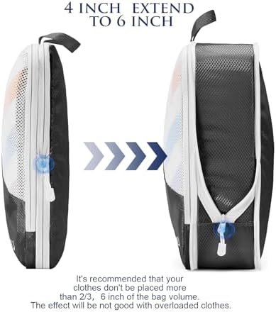 【Travel Packing Cube Set of 7 Includes】: 7 Set Luggage Organizers with 4 Compressible Packing Cubes, Shoe Bag, Underwear Cube Laundry Bag Size:1 XL (17.5″x 12.8″x 4.3″), 2 L (13.8″x 12.8″ x 4.3″), 1 M (13.8″x 9.8″x 4.3″), 1 Laundry Bag (20.9″ x 14.6″),a shoes bag (16.92″x 10.23″x 3.54″)and a underwear bag (9.5″ x 6.3″ x 2.8″)Perfect separate your travel accessories for storing different sizes of your clothes in these compression packing cubes, making your travel storage more convenient.