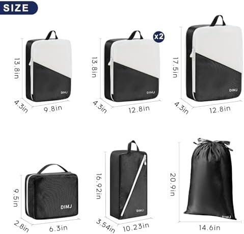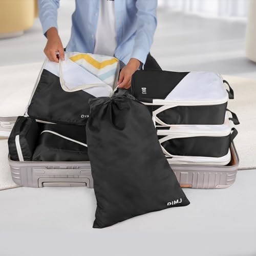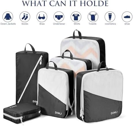 DIMJ Compression Packing Cubes,Travel Packing Cubes for Suitcase 7 Set Travel Lu…