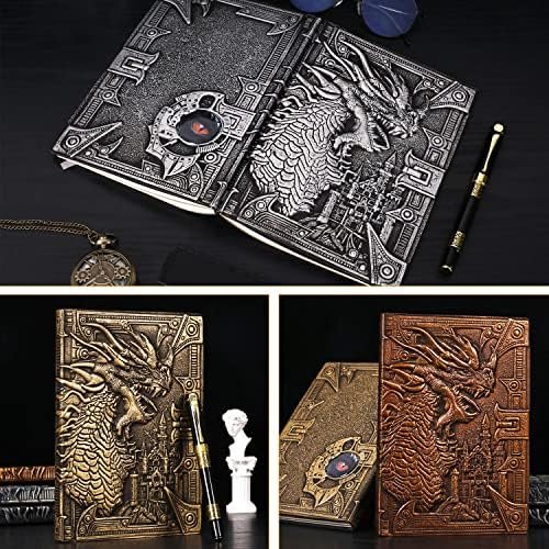 DND Dragon Notebook 3D Embossed Leather Journal A5 Vintage Travel Journal with P…