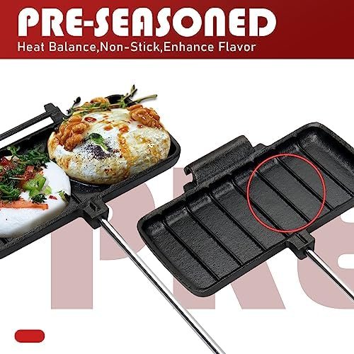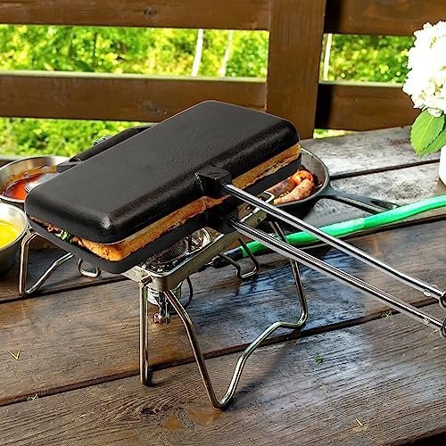 Application: This cast iron sandwich maker is suitable for all kinds of heating methods, including gas stoves, induction stoves, campfires, etc. It is recommended that a small amount of oil or butter be added to the cast iron before use.